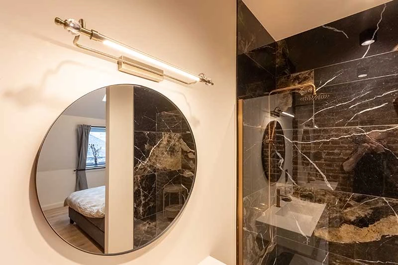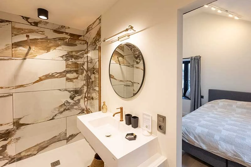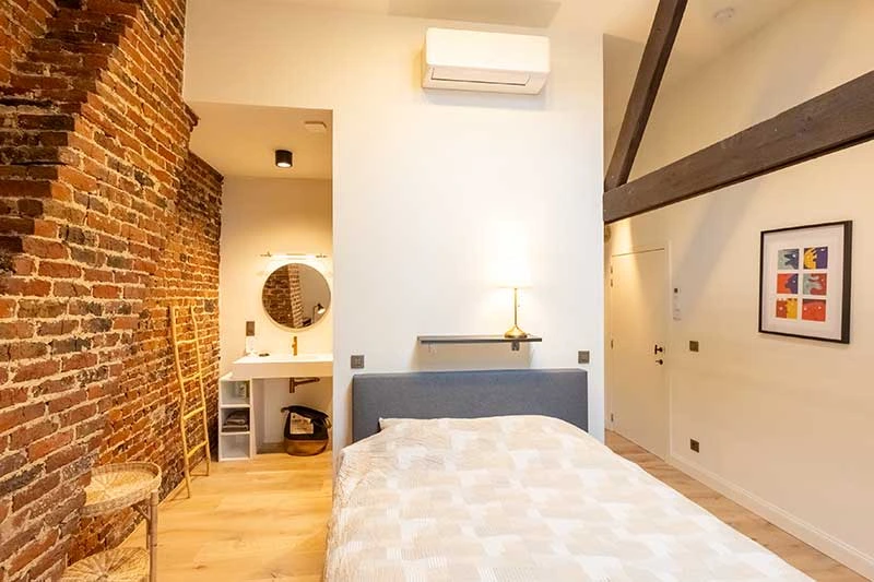 - d’un lit double avec table de chevet (draps fournis ; literie 100% hypoallergénique et made in Europe),